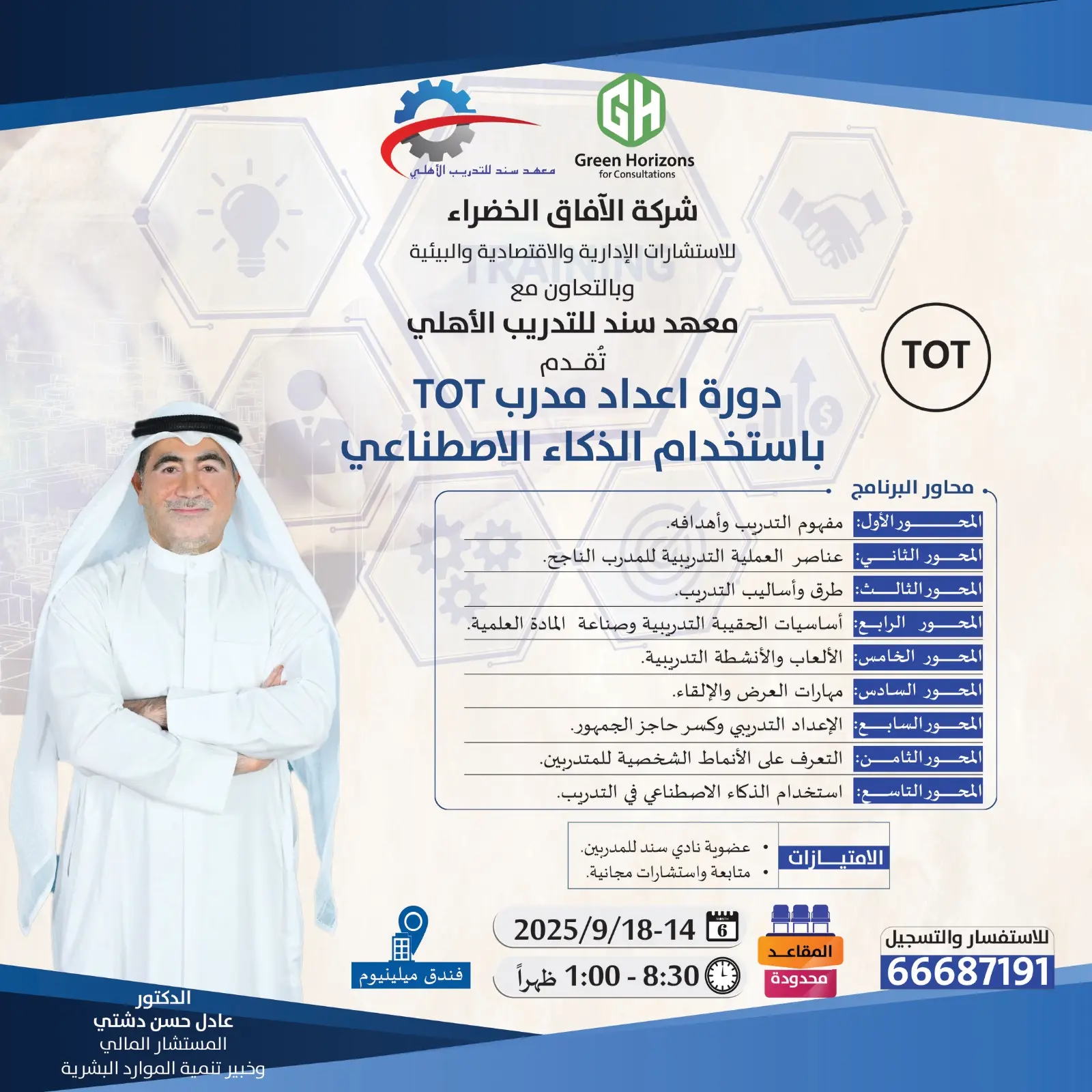 شركة الآفاق الخضراء تقدم العديد من الخدمات في مجال الإستشارات المالية والإدارية والتدريب وتطوير المشاريع